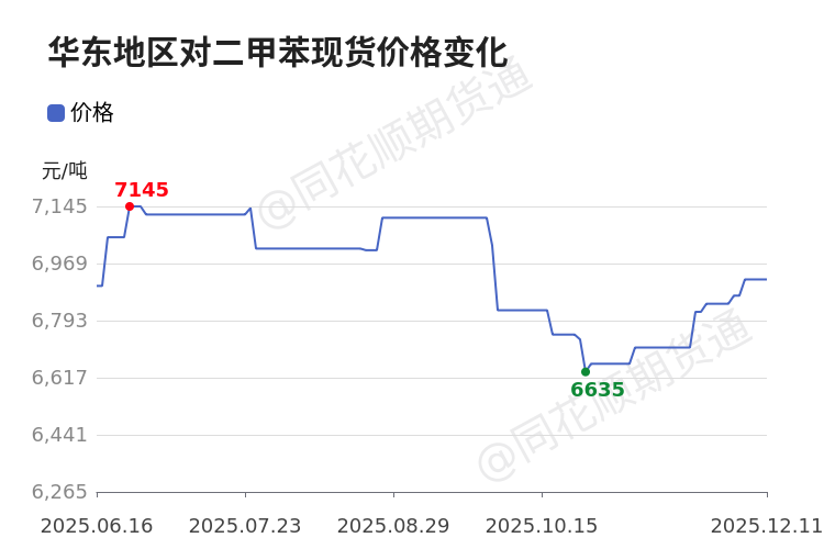 12月11日,对二甲苯现货市场价格如下(单位:元/吨;最新更新时间:12-11 20:05):