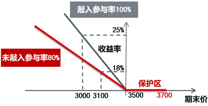 情景三:合约存续期内未敲入,期末标的资产收盘价跌破3500元/吨,获得收益=每吨跌幅×未敲入参与率。