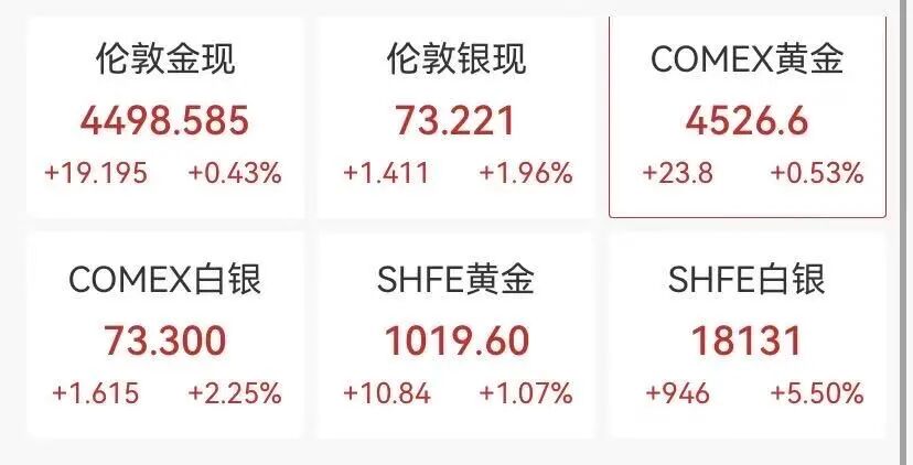 12月26日,国际贵金属市场全线飘红。