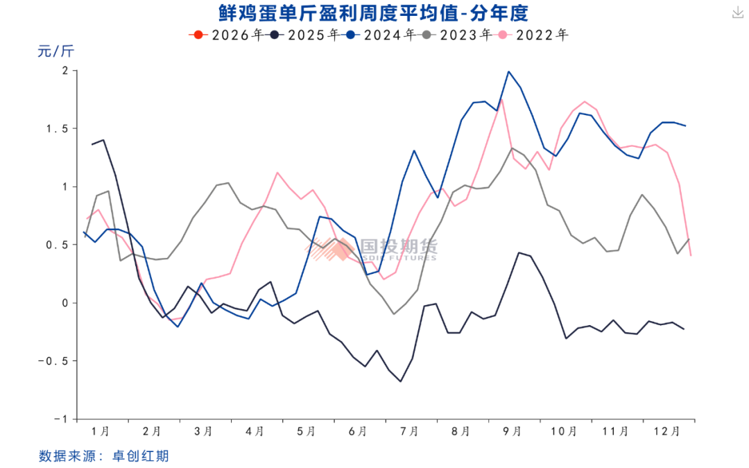 从行业利润角度来看,2025年蛋鸡养殖全年几乎都在亏损,仅年初及9月蛋价反弹期间实现小幅盈利,其余时间均在亏损。由于养殖亏损的持续,2025年下半年养殖端补栏情绪和上半年相比发生了逆转。