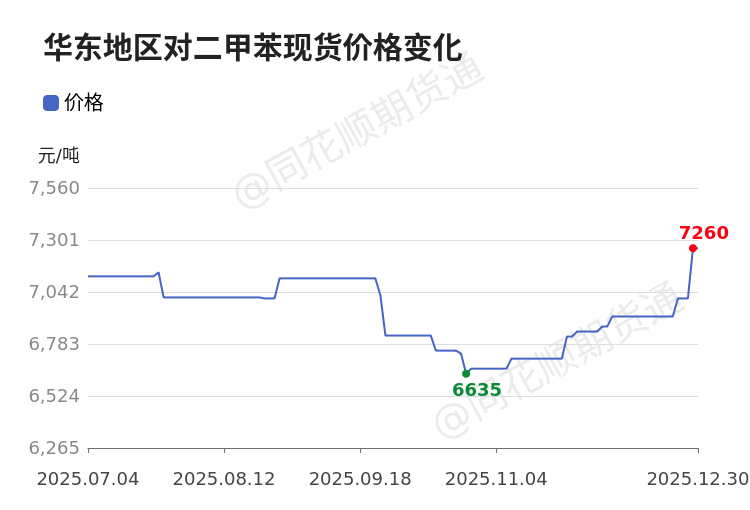 12月30日,对二甲苯现货市场价格如下(单位:元/吨;最新更新时间:12-30 20:05):